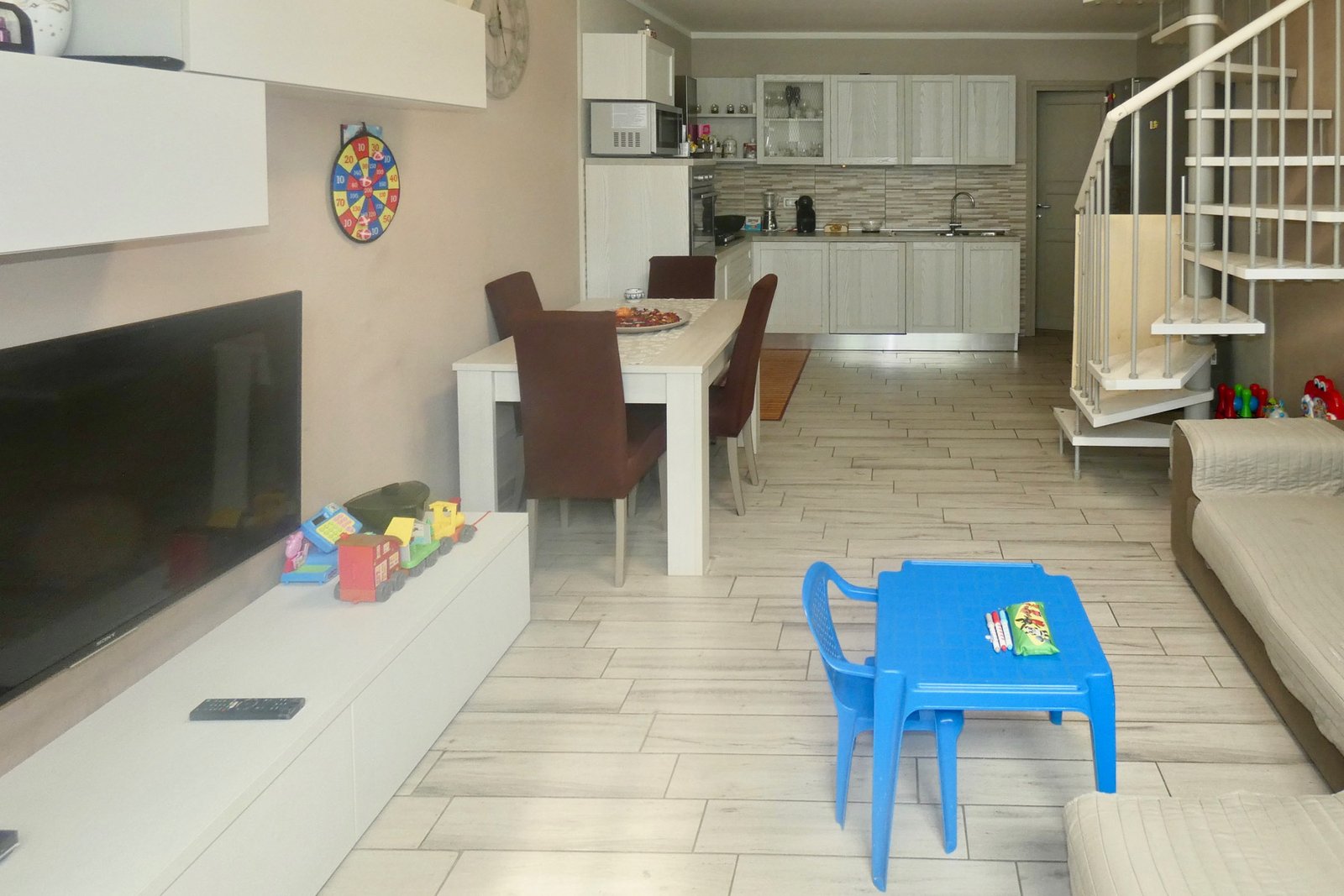 Accessible from inside the house via a spiral staircase, the lower floor features a large renovated room currently used as a tavern-style kitchen and living area. This space offers a warm and inviting atmosphere, perfect for gatherings or independent guest accommodation.