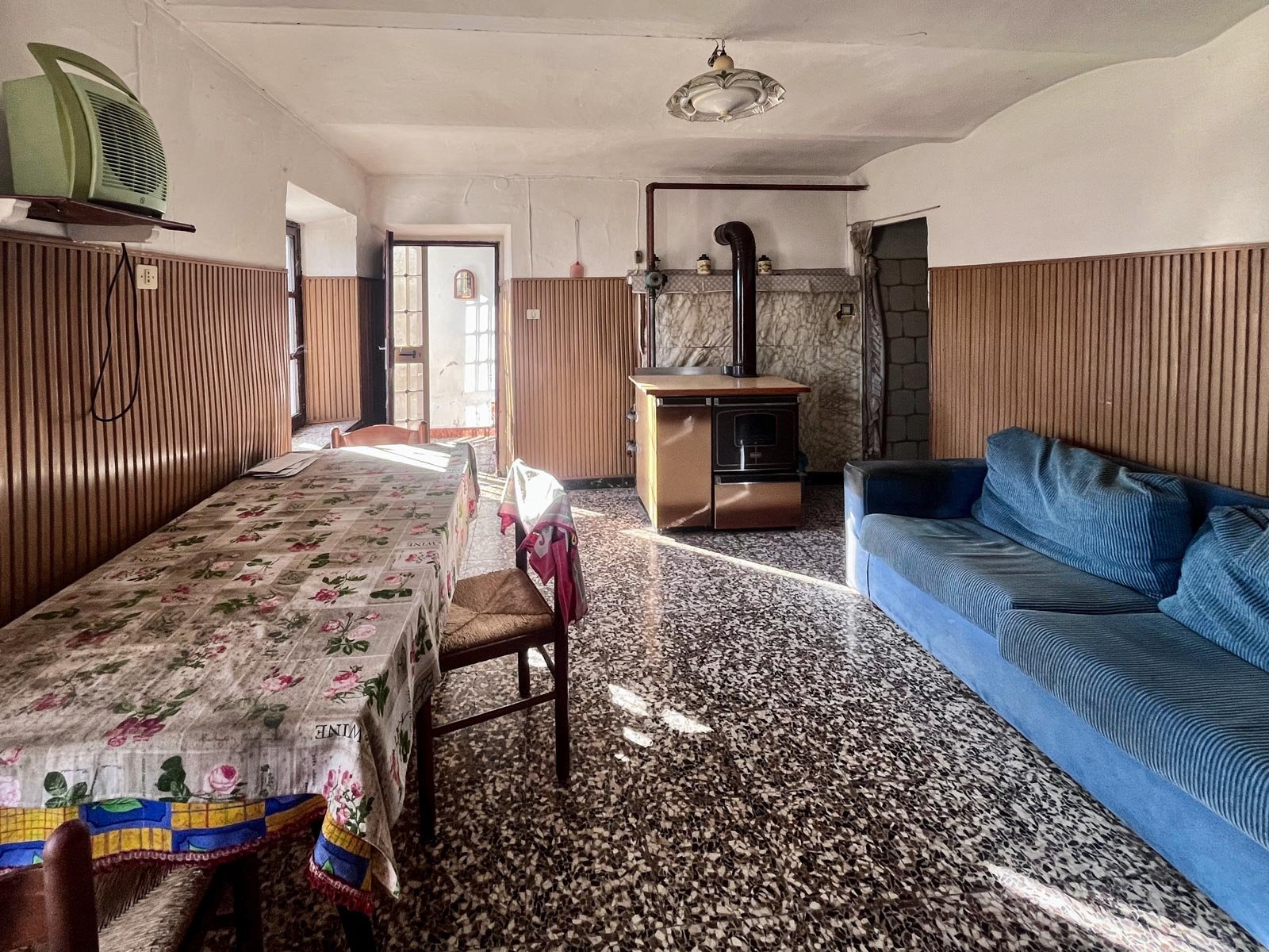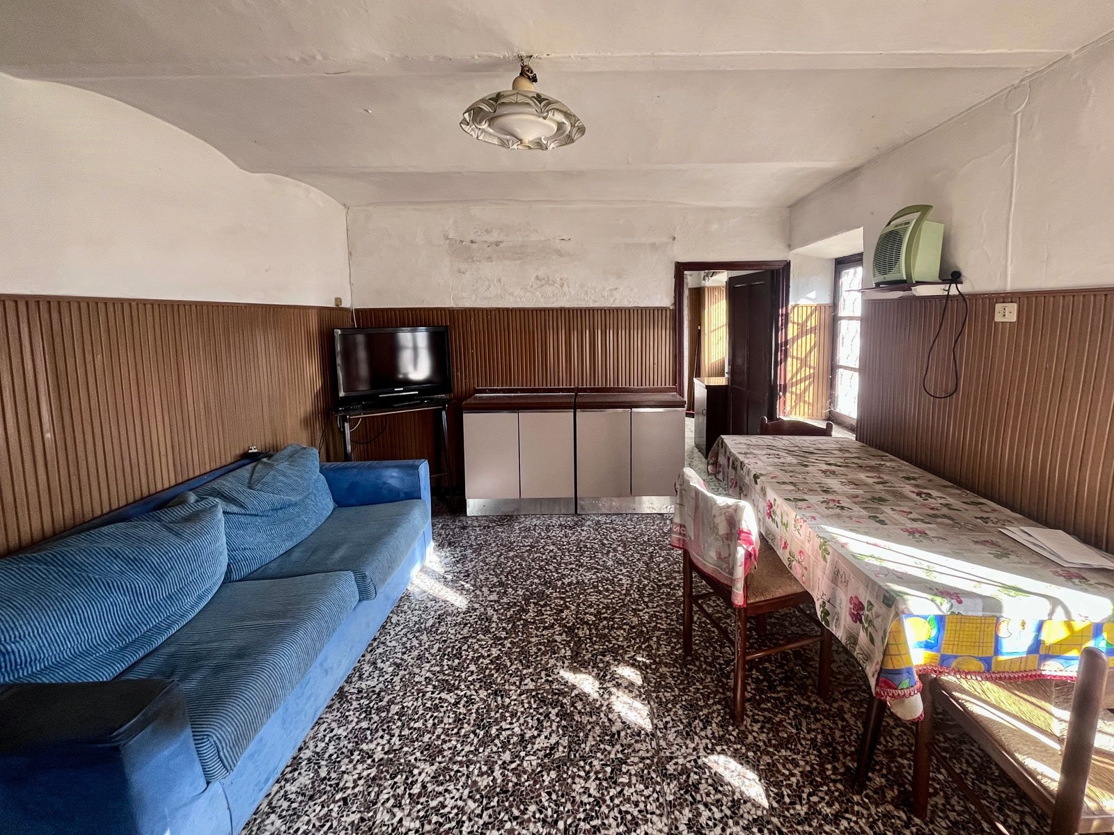 A bathroom with bathtub serves this level, while the former hayloft represents an important opportunity for expansion. This space can be transformed into additional bedrooms, a panoramic living area, or independent units, depending on the intended use of the property.