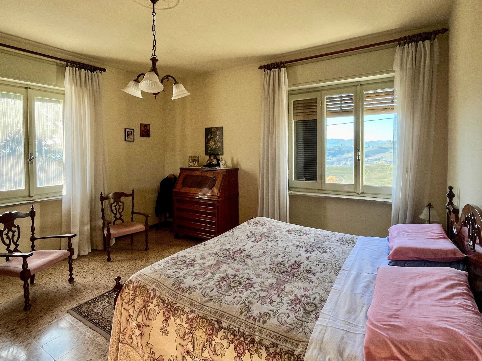 Traditional Piedmont farmhouse with panoramic vineyard views
