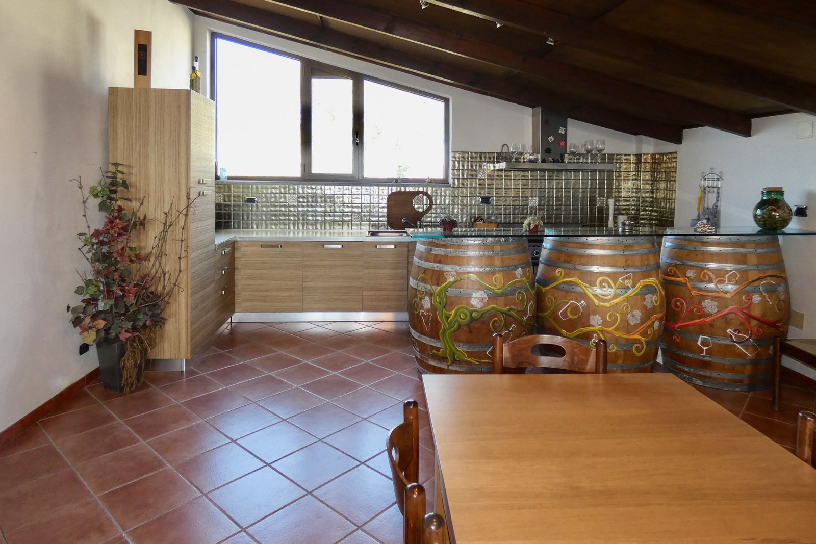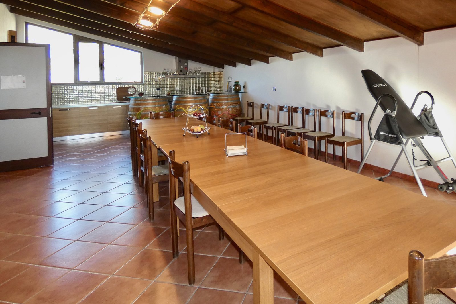 On this same level there is a spacious and particularly valuable feature: a large tasting room with kitchen, directly connected both to the living area and to the cellar below. This space is ideal for hosting wine tastings, events, or creating a hospitality experience linked to local wine production.