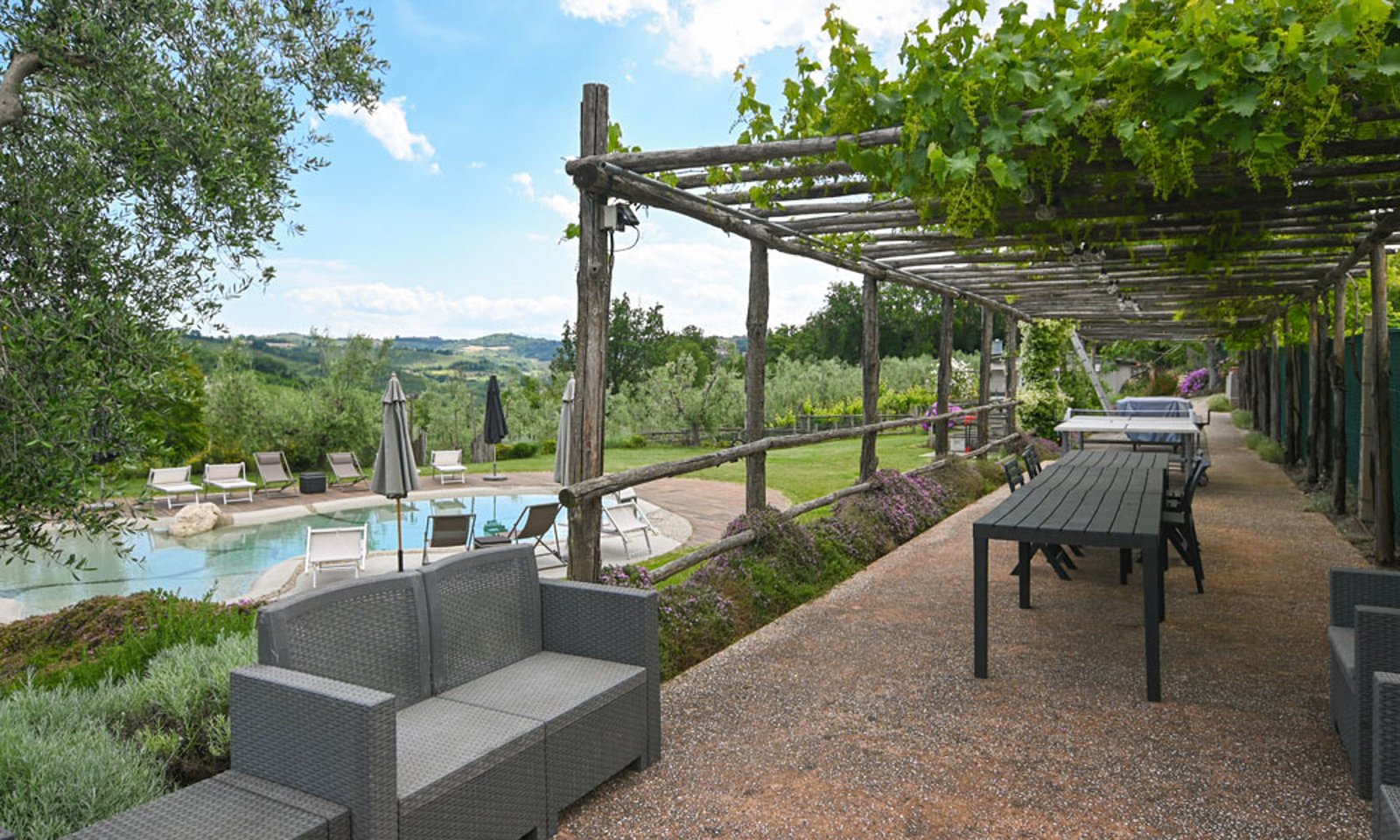 An organic vegetable garden complements the property’s self-sufficiency, while the olive grove provides the opportunity for small-scale oil production — an authentic expression of rural Italian living. At the far end of the estate, a shaded woodland area offers a cool retreat during warm summer days.