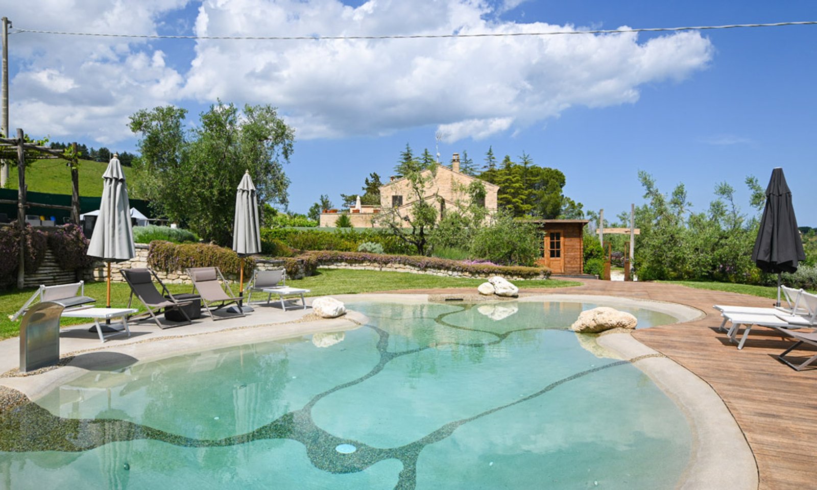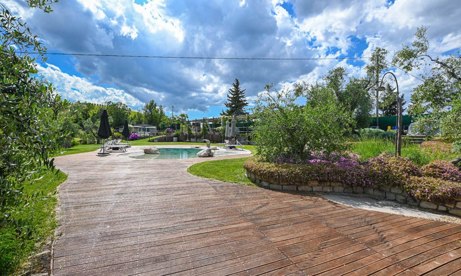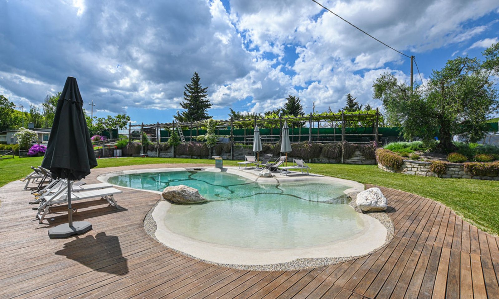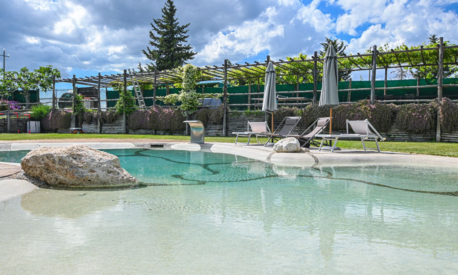 Encompassing about one hectare, the grounds offer a masterful balance between cultivated and natural spaces. The highlight is the bio-design swimming pool — an architectural jewel set away from the main house to ensure peace and privacy. The pool includes a counter-current system for active swimming and is surrounded by a sun terrace ideal for lounging and enjoying the panoramic views.