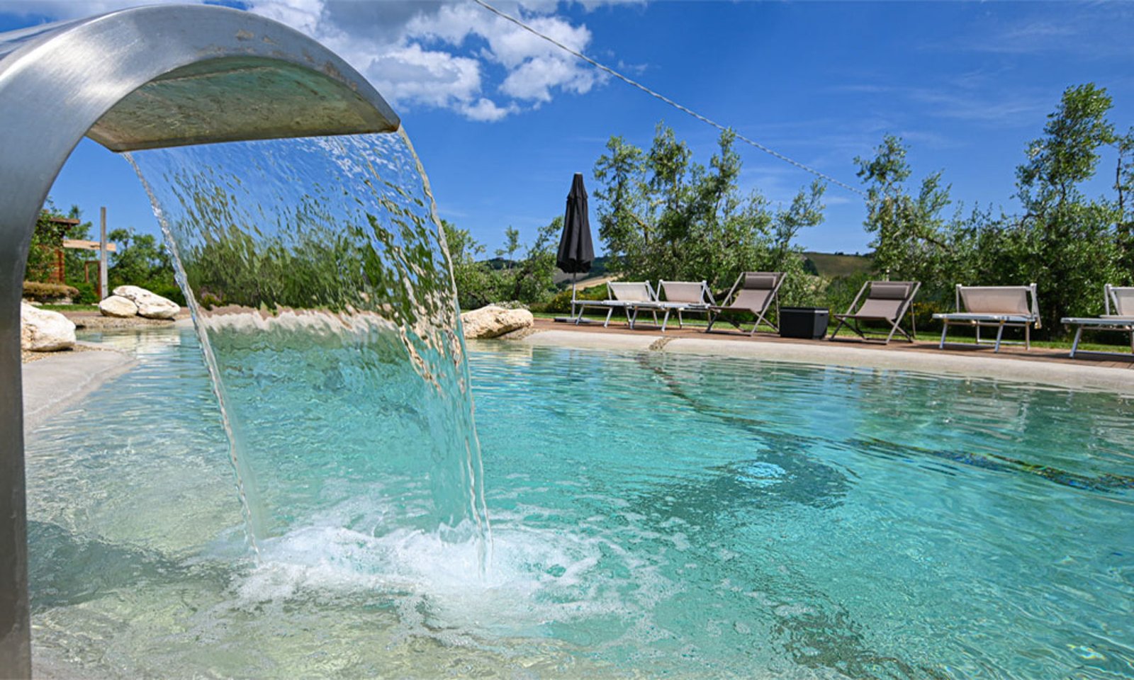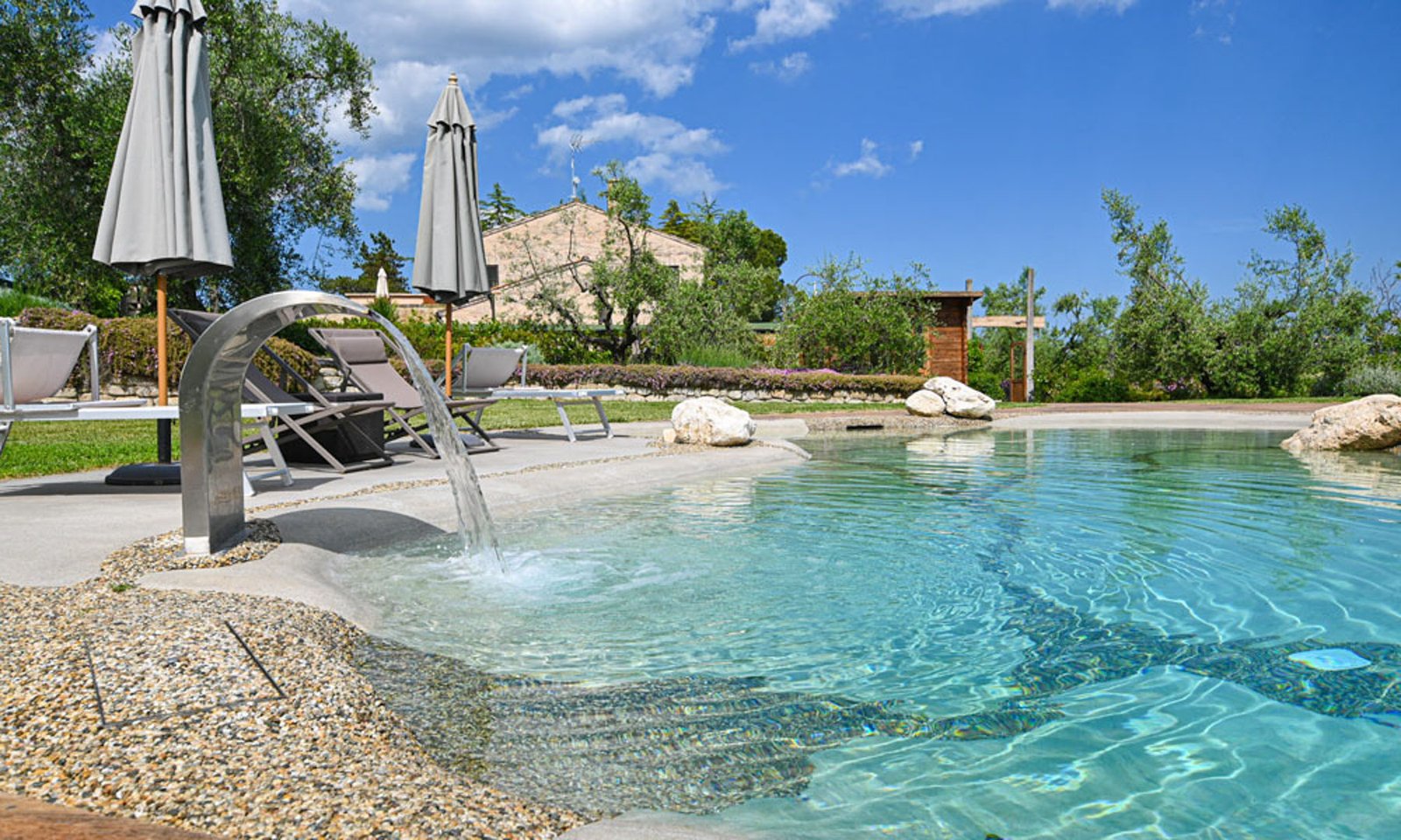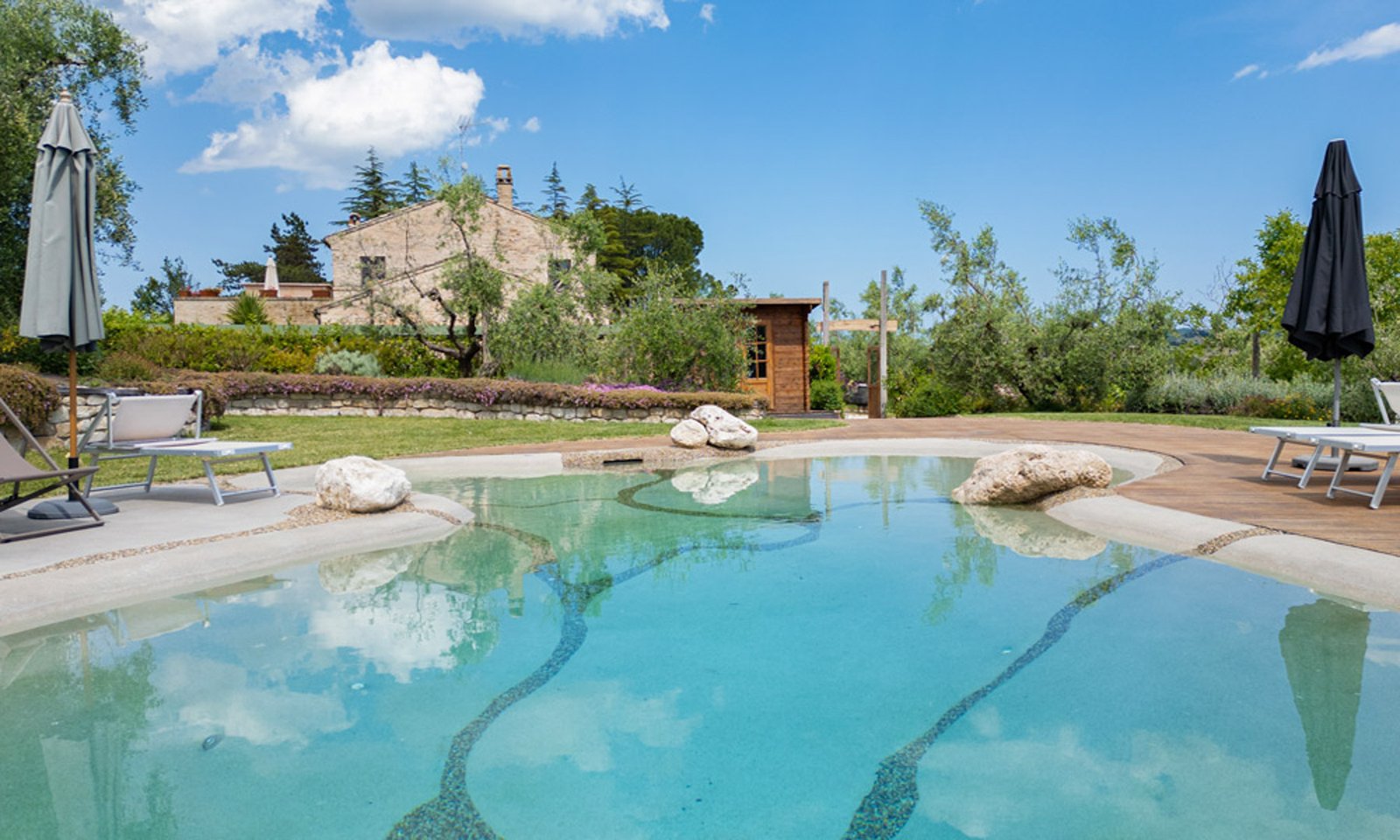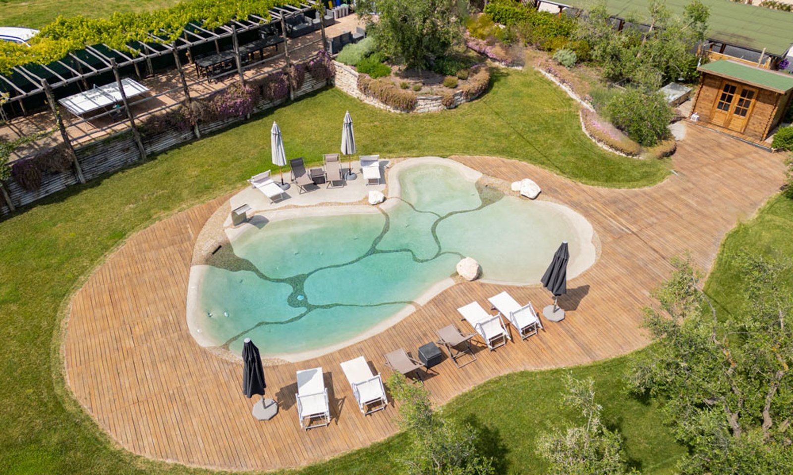 Encompassing about one hectare, the grounds offer a masterful balance between cultivated and natural spaces. The highlight is the bio-design swimming pool — an architectural jewel set away from the main house to ensure peace and privacy. The pool includes a counter-current system for active swimming and is surrounded by a sun terrace ideal for lounging and enjoying the panoramic views.