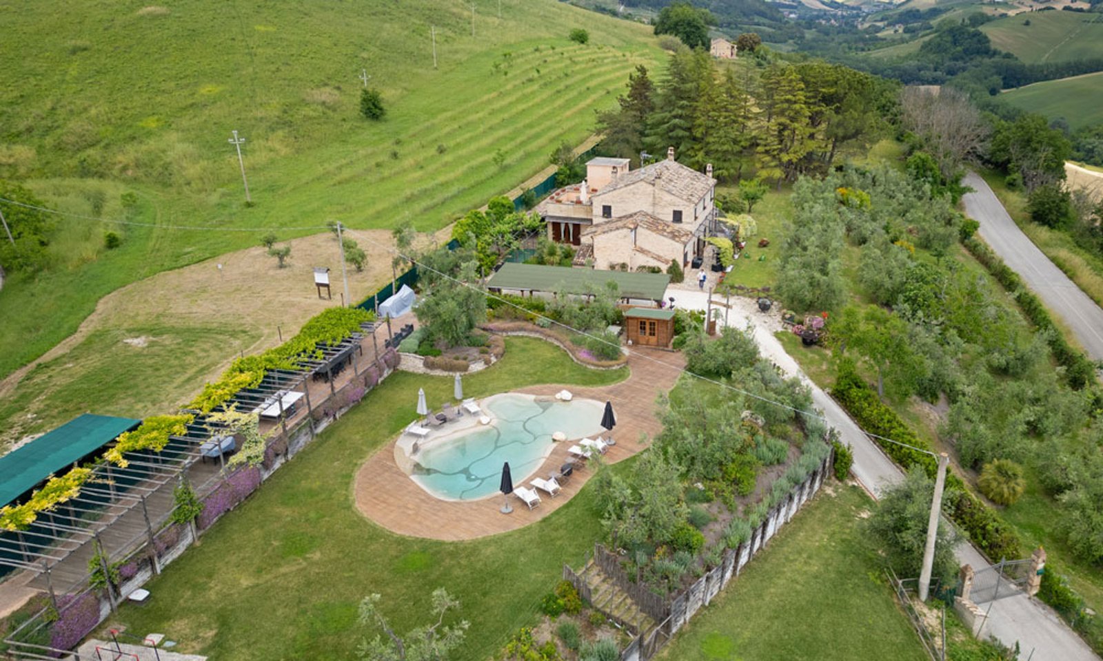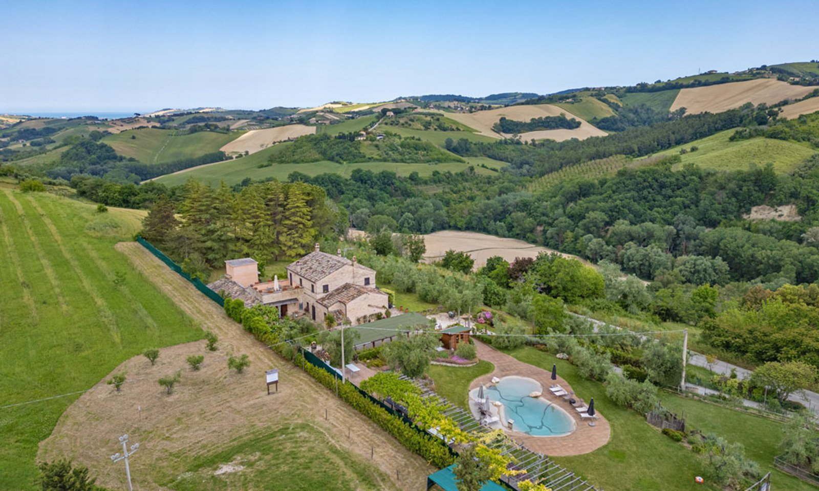 Set in the tranquil hills of Fermo, this elegant Marchigiano farmhouse enjoys an enviable position that combines complete privacy with easy access to the coast and local services. The property is only 2 km from the nearest village with shops and cafés, and just a short drive from Fermo, a town rich in culture, art, and architectural beauty.