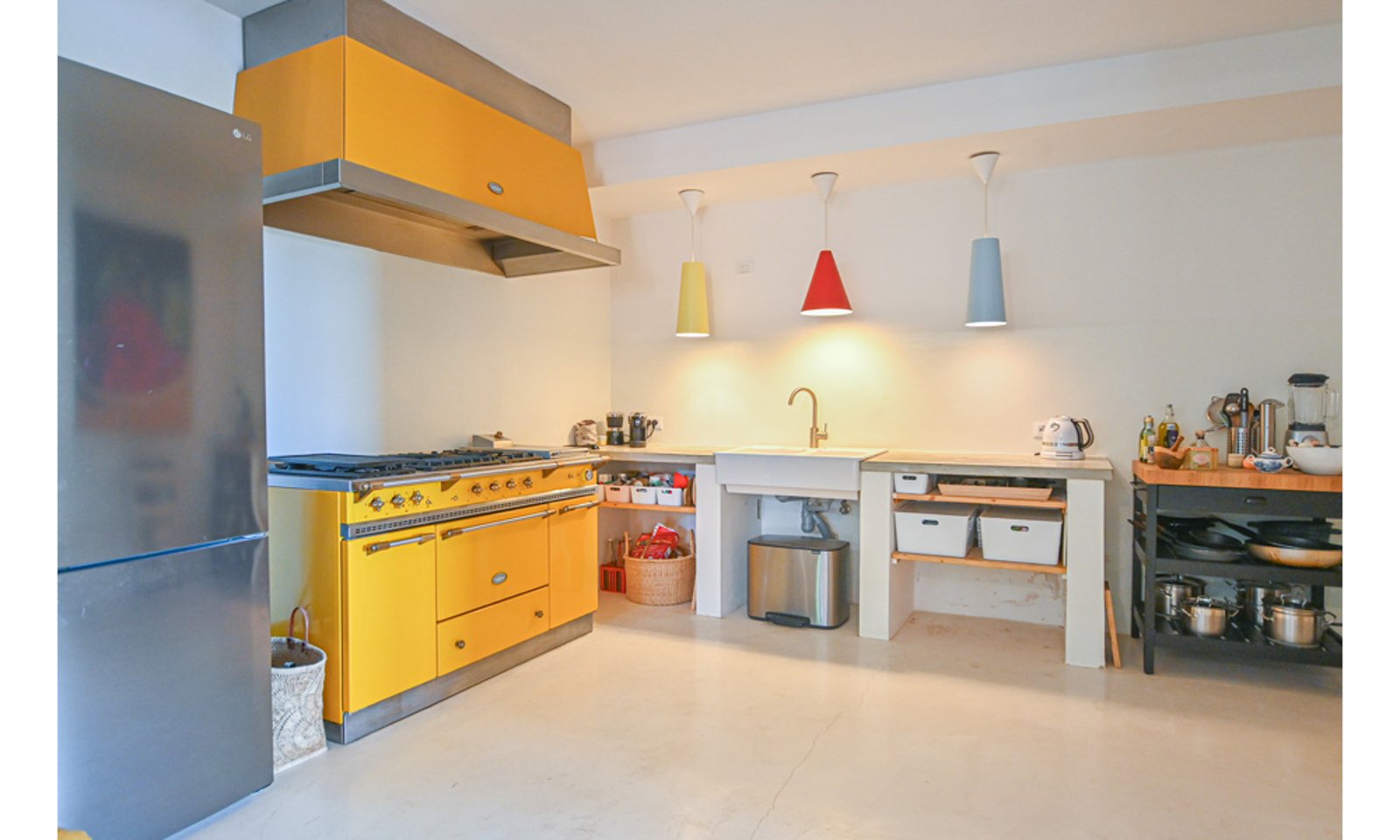 This apartment also develops over two levels. On the ground floor is a well-equipped kitchen with direct access to the garden, ideal for al fresco meals. The first floor offers two generous bedrooms, two bathrooms, and a small living room that can serve as an additional bedroom if desired.