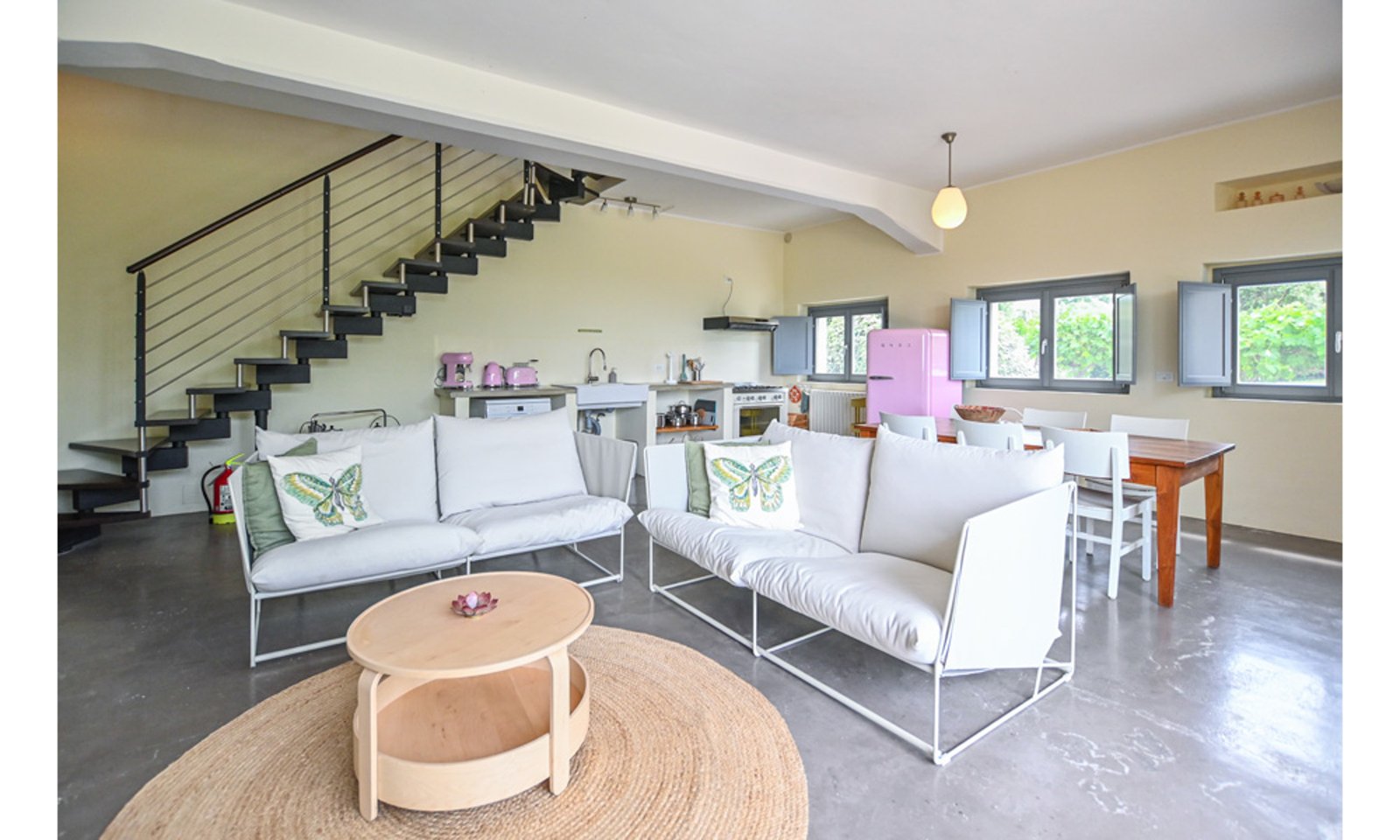 This bright and fully restored farmhouse, measuring about 580 sq.m., offers a rare blend of residential comfort and income potential. The structure has been carefully divided into four independent apartments: one designed as the owner’s residence and three conceived as guest accommodations.