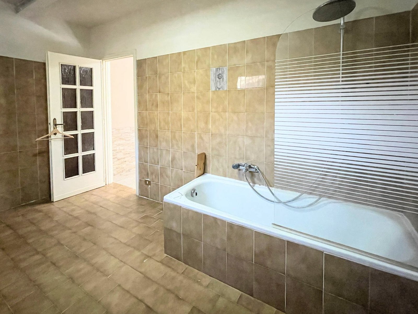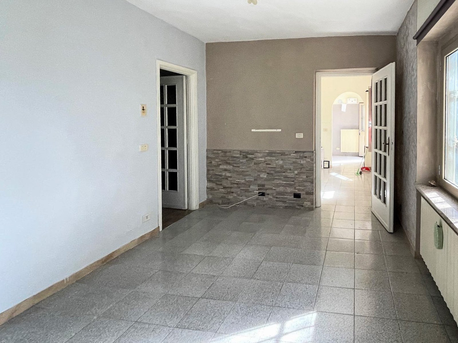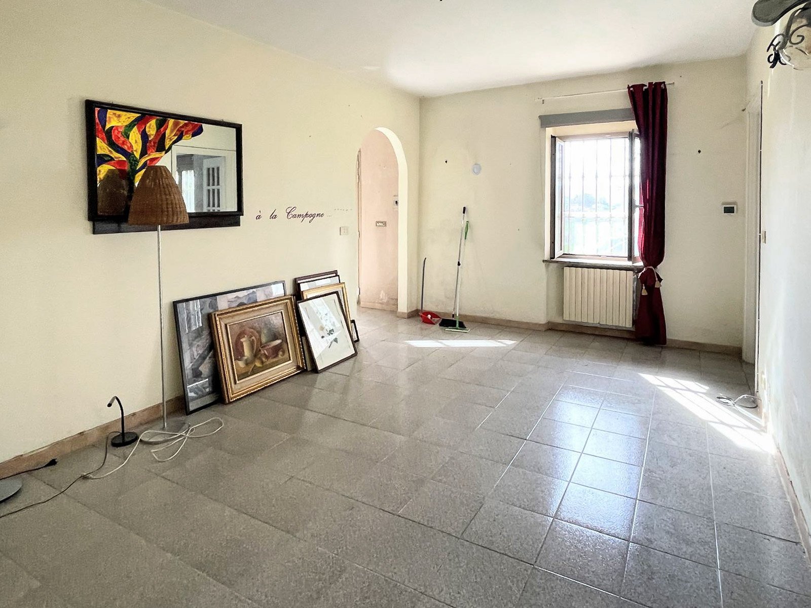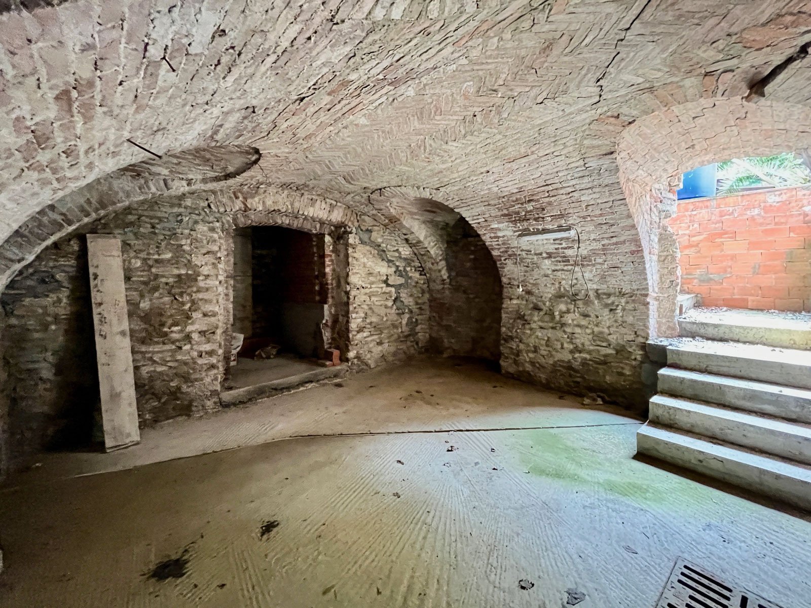 A secondary entrance leads directly to a spacious cellar with exposed brick vaults, a characteristic and charming feature that enhances the traditional appeal of the property and offers potential for conversion into a tasting room or leisure space.