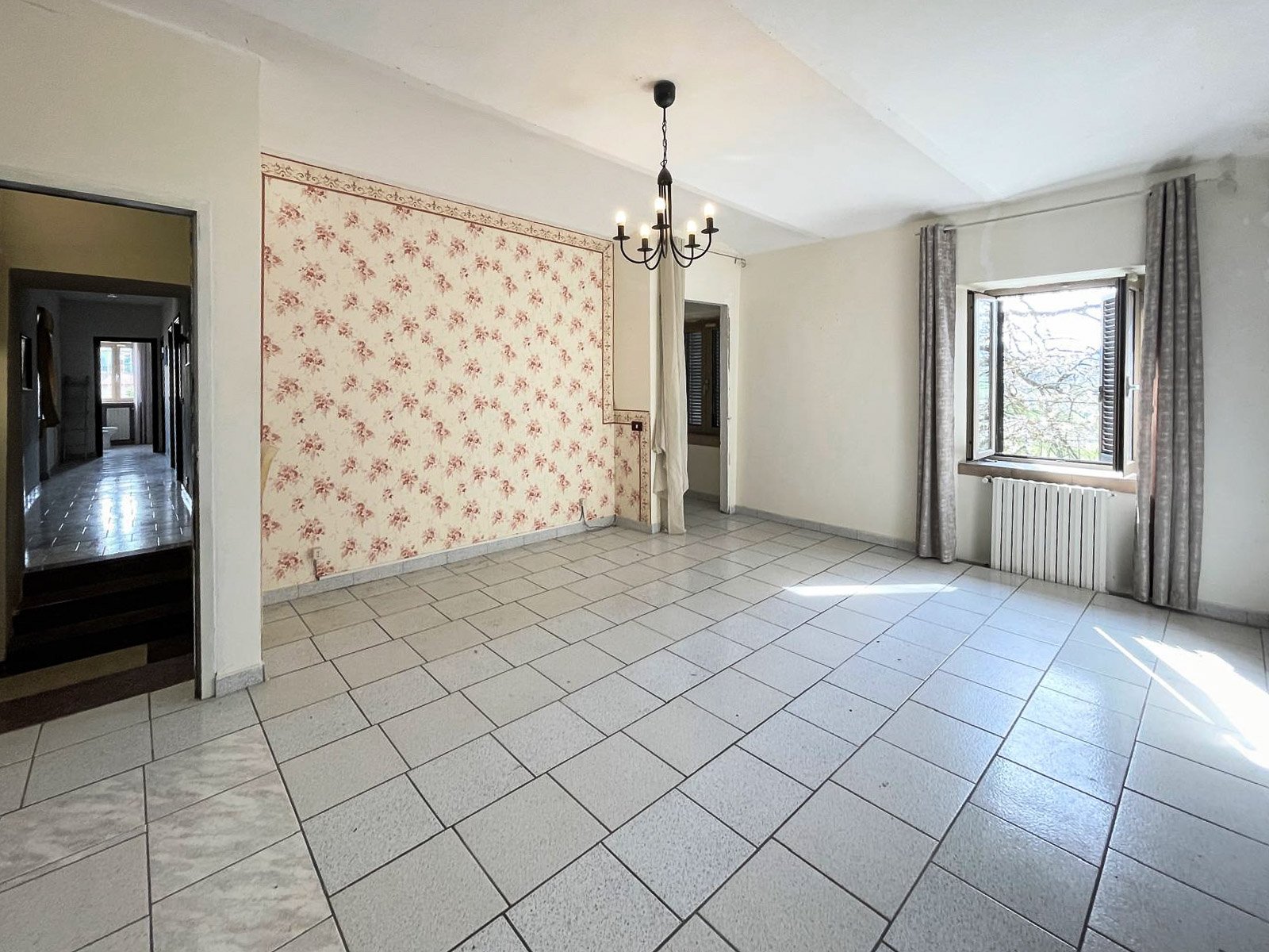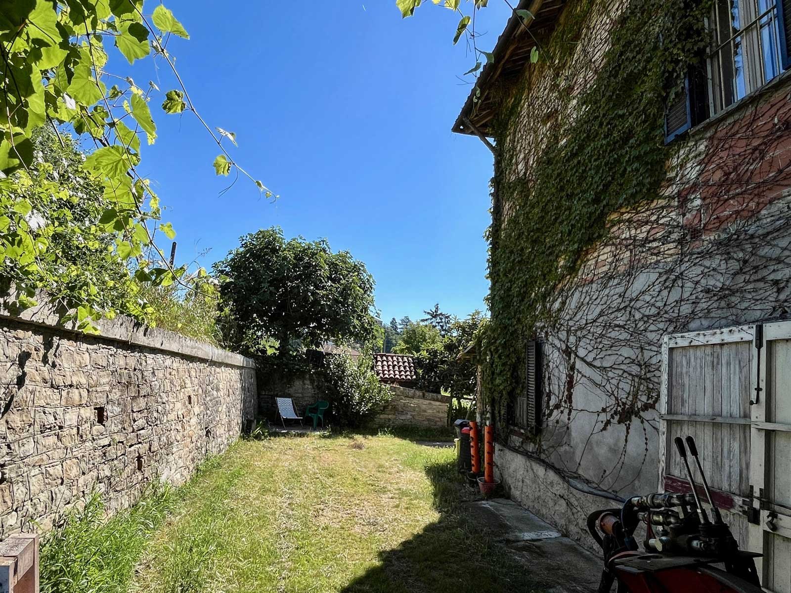 This rustic farmhouse, free on three sides, features an independent entrance and a fully fenced garden, ensuring privacy and security. The house is arranged over two main levels plus a semi-basement, offering generous living spaces and traditional architectural elements.